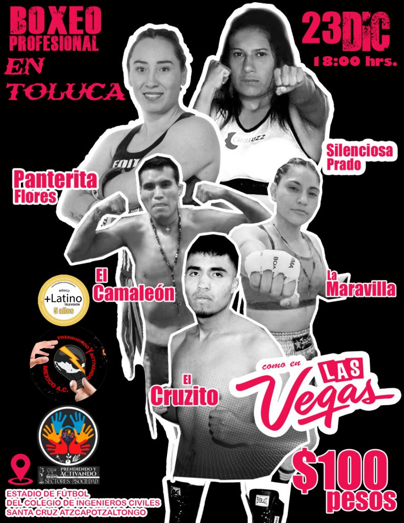 Está por llegar a Toluca un espectáculo sin precedentes con «Boxeo Profesional Diciembre 2023». Este evento de boxeo de primera categoría, respaldado por la Federación Mexicana de Boxeo, será una velada épica que mezcla la emoción del ring con un compromiso real hacia la comunidad. Organizado por «Prendiendo y Activando los distintos Sectores de la Sociedad,» «+MásLatino Televisión,» y «Prendiendo y Activando México,» este evento se llevará a cabo el 23 de diciembre de 2023, a partir de las 18:00 hrs, en el Estadio de Fútbol del Colegio de Ingenieros Civiles en Santa Cruz Atzcapotzaltongo, Toluca, Estado de México.