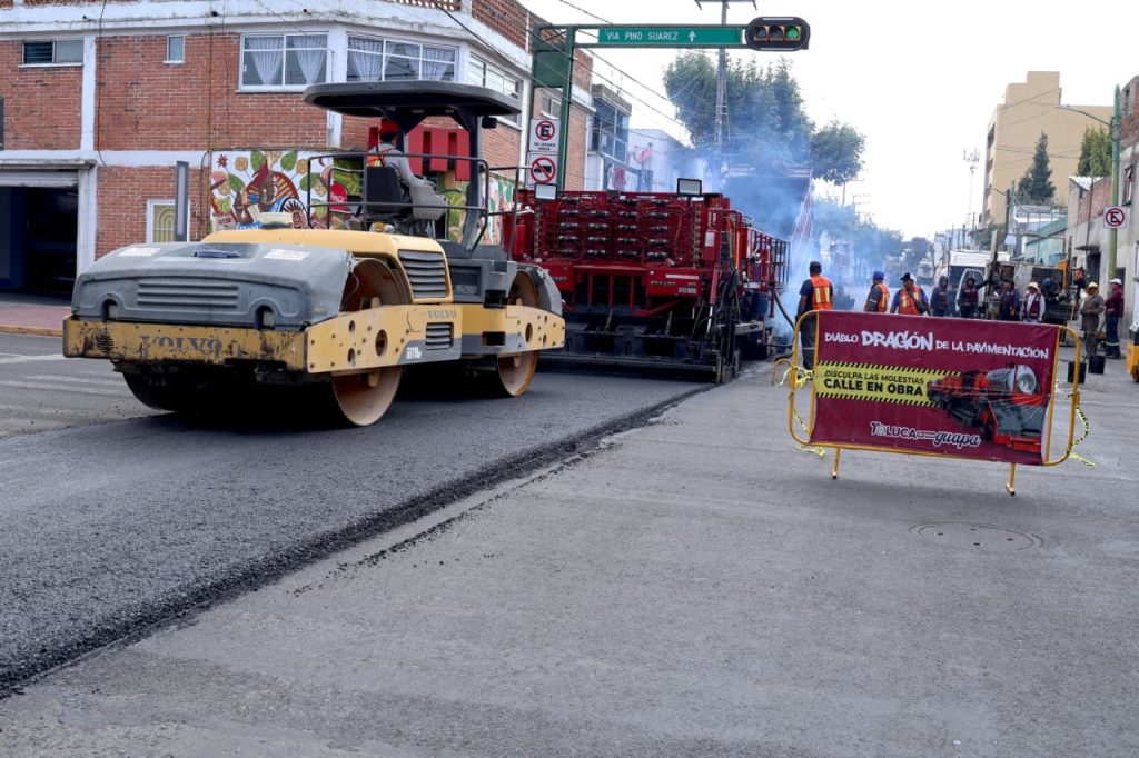 Los trabajos de rehabilitación vial en Toluca continúan con avances en distintas zonas del municipio mediante el uso de maquinaria especializada, implementada como parte de las acciones para mejorar la infraestructura urbana.