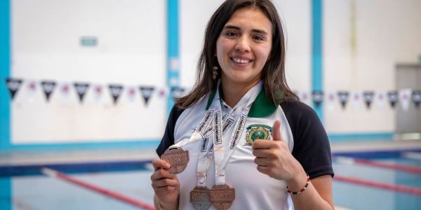 La estudiante de la UAEMéx, Verónica Vega Vidal, obtuvo una medalla de plata y dos de bronce en los Campeonatos Nacionales Universitarios ANUIES 2025, consolidándose como una de las principales exponentes de la natación universitaria.