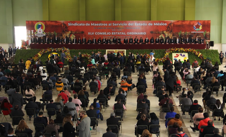 Como ya se había anticipado, el Consejo Estatal del SMSEM se realizó de manera híbrida: aproximadamente mil Delegados y Representantes Sindicales respondieron a la convocatoria y se presentaron en el auditorio Profr. Agripín García Estrada, en Toluca; a su vez, unos 3 mil quinientos lo hicieron también de manera presencial, pero en cada una de las 13 regiones sindicales de la entidad, que gracias a la tecnología se conectaron en tiempo real con la sede principal.