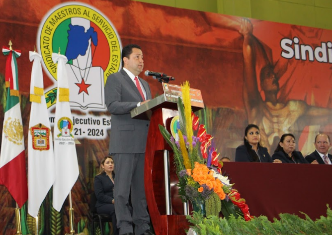 “Es propicia la ocasión para expresarle un amplio reconocimiento, por este primer año de labores a nuestro amigo Marco Aurelio Carbajal Leyva, traducido en logros para todos los miembros de esta organización sindical. Me pide el Gobernador ratificarle su amistad”, expresó el Secretario de Educación previo a inaugurar el evento, con la representación del Gobernador Alfredo Del Mazo Maza.