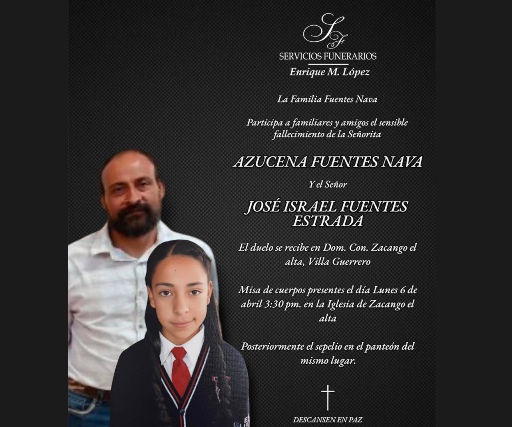 Posteriormente, en la tarde noche del Viernes Santo, un padre y su hija murieron ahogados en una presa ubicada en la comunidad de La Finca, Villa Guerrero, cuando la menor se volcó en una lancha y su papá intentó rescatarla.